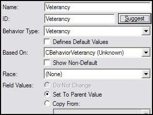 The first node’s ‘Type’ will be set to ‘Count Behavior’, the ‘Alias’ to your VETERANCY behavior and the ‘State’ to ‘Completed at Unit’.