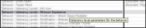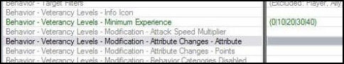 Once that is done, we now need to set the experience values which are needed for the next level. For this, find the field called 'Behavior - Veterancy Levels - Minimum Experience'. Double click to open it.