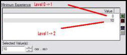 So lets say we need 10 experience to go from level 1 to level 2, you'll set the second field to '10'. And if you want to go from level 2 to level 3 with a need of 30 XP -TOTAL-, you'll set the value to 20.