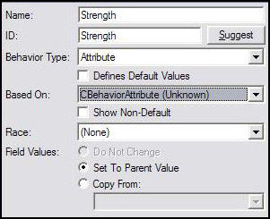 Wham! Your first attribute is done! But, your unit doesn't have it yet. So go back to your unit, and once again to the field 'Behavior - Behaviors - Behavior', and add a new one. Find your attribute (for me, Strength) and add it. My Ling / your hero has now the attribute Strength!