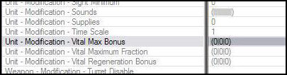 Secondly, we'll set the extra Life. Find the field called 'Unit - Modification - Vital Max Bonus', and double click it.
