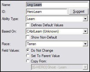Alright, stick to the ‘Ability’ tab and add a new object. Set his name to something like ‘Ling Learn’ and use suggest ID. Set the ‘Ability Type’ to ‘Learn’ and set a race if you want. Hit OK.
